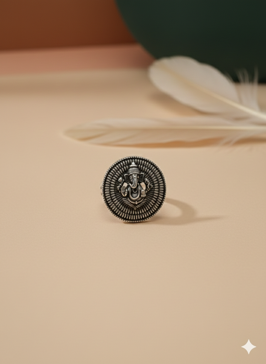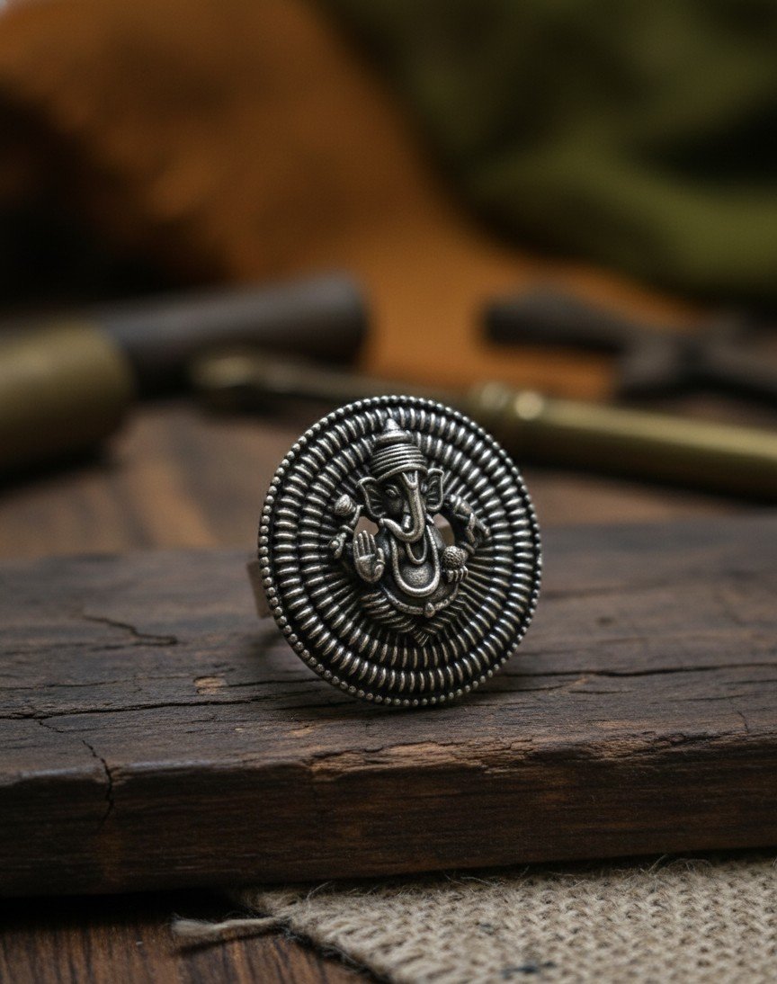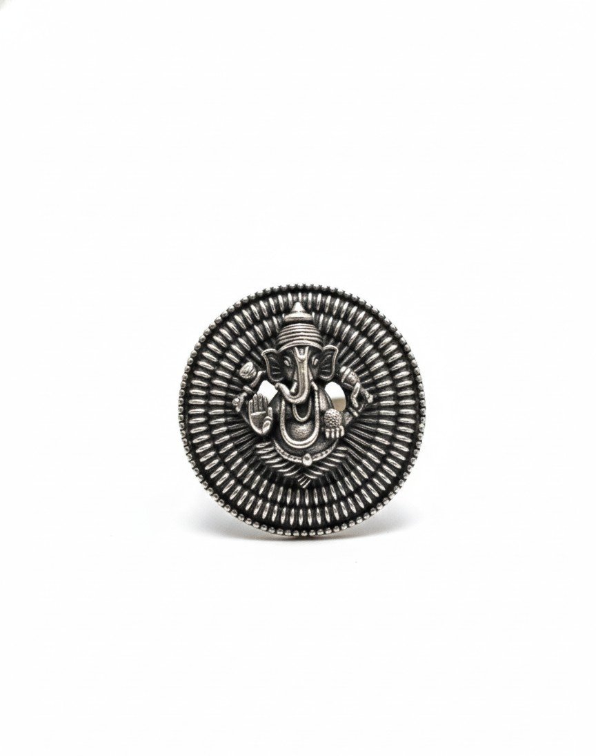 Vinayak Mudra  Ganesha Statement Ring in Oxidised Silver